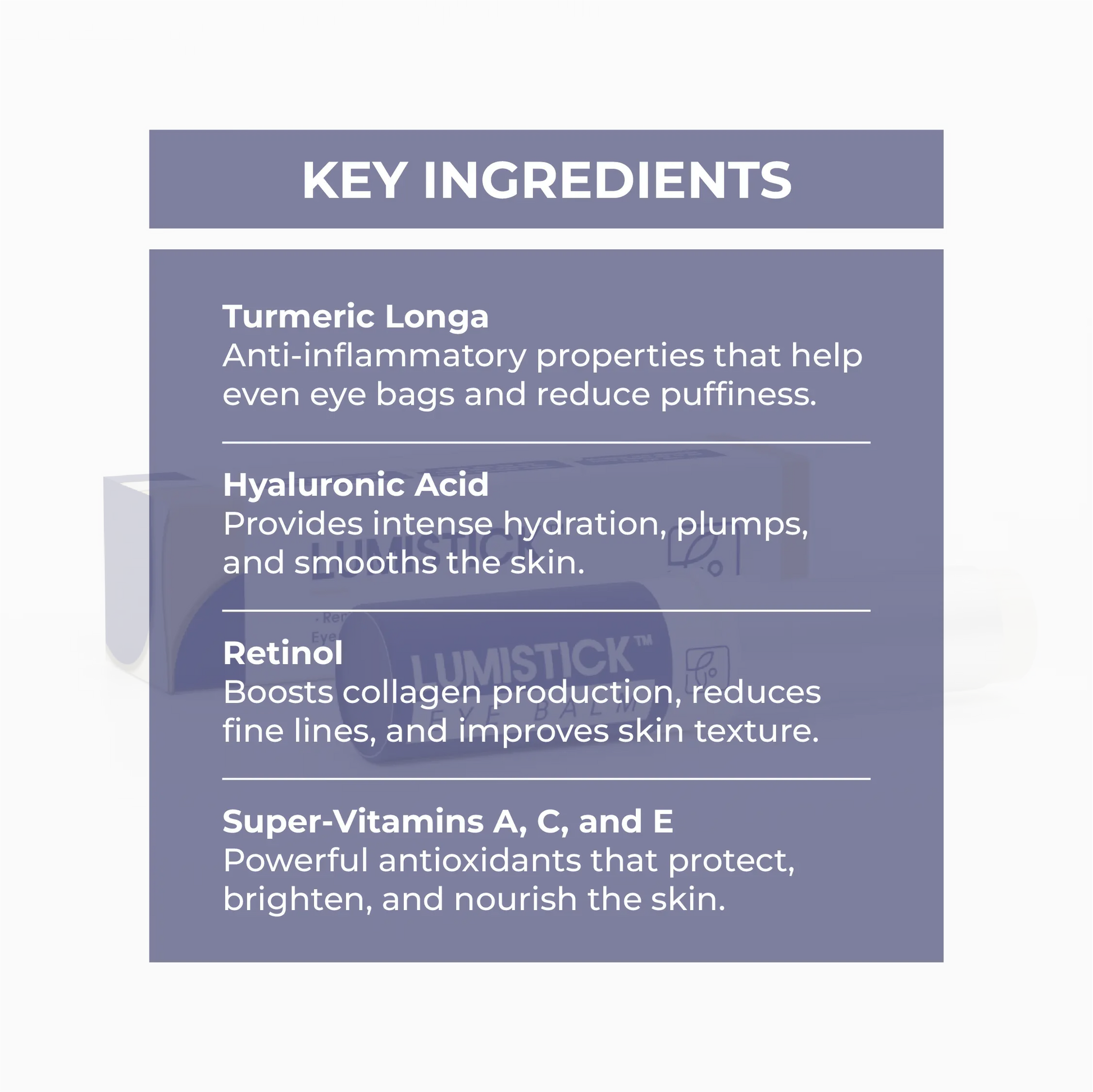 Specially formulated to deliver fast, noticeable results, the natural-based formula of the LumiStick™ safely erases years of aging around the eyes.