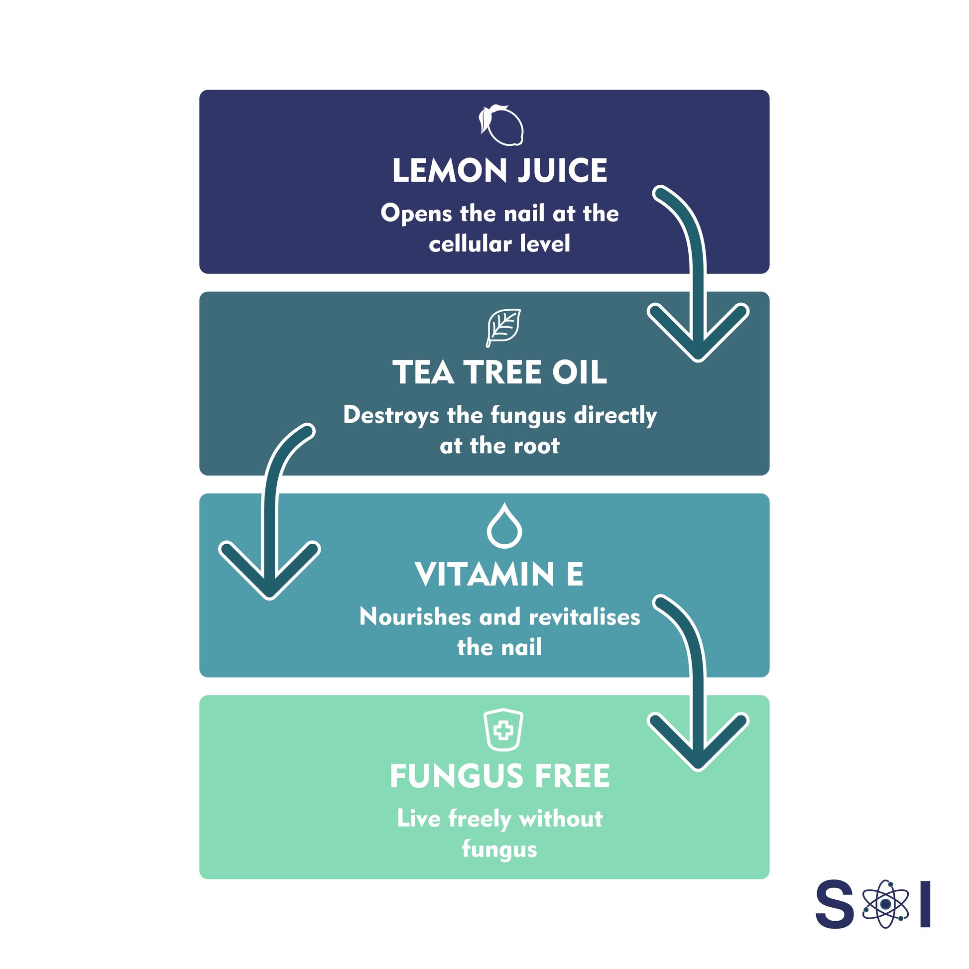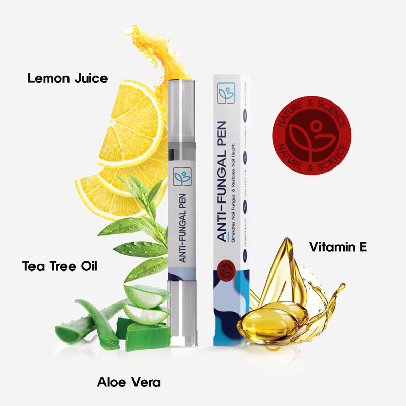 Our Anti-Fungal Pen features a blend of natural ingredients renowned for promoting nail health and combating fungus. Ingredients include soothing aloe vera, brightening lemon juice, antifungal tea tree oil, and protective vitamin E. Together, they strengthen and nourish nails while effectively fighting fungus. It's a safe, natural solution for healthy, beautiful nails.