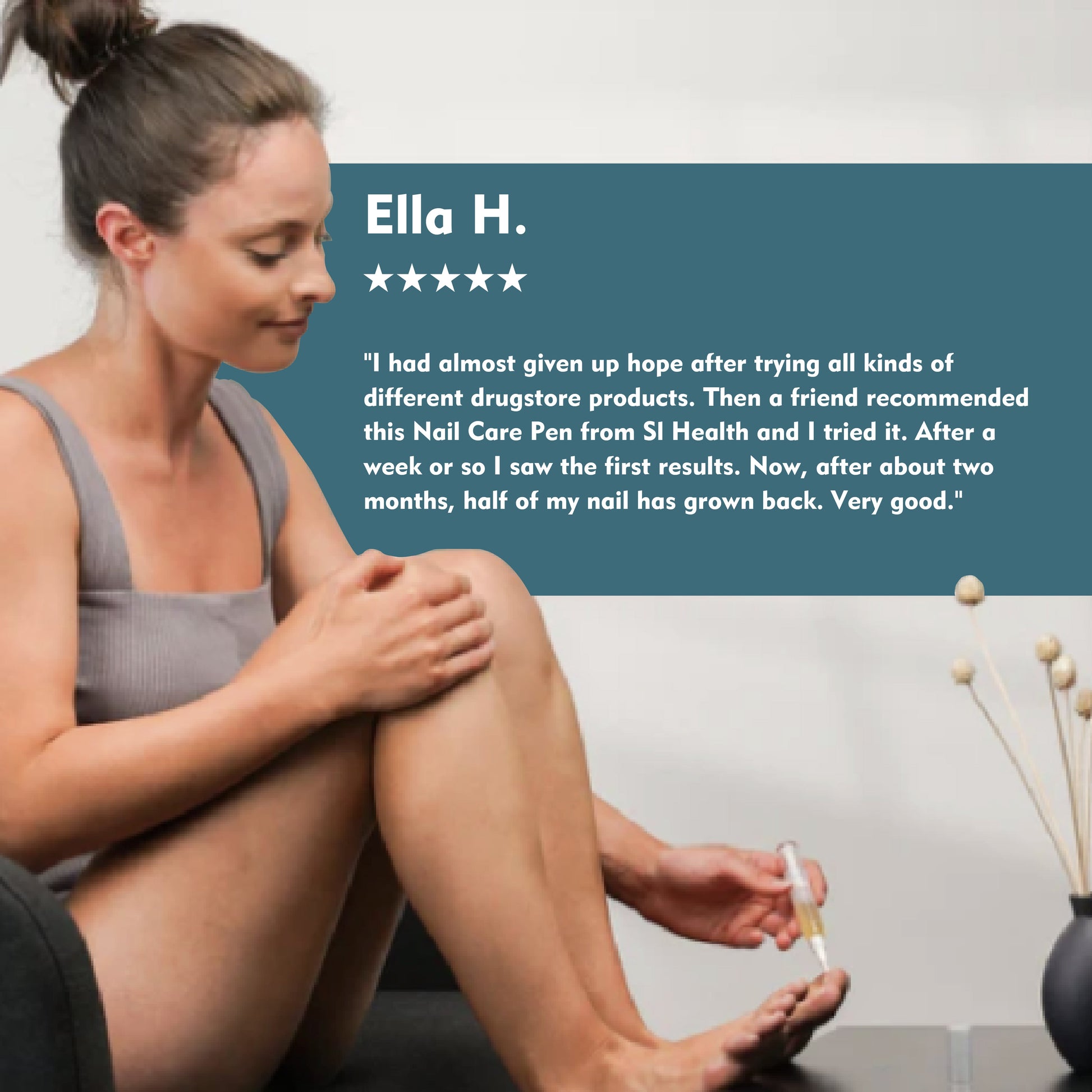 After about 2 weeks, many people can already see a difference. The nail starts to grow back in a healthy way. However, it is important to know that nail fungus does not disappear overnight. It usually takes 4 to 8 months before the old nail grows out completely and the nail heals completely. It is important that you use the nail care pen every day during this time.